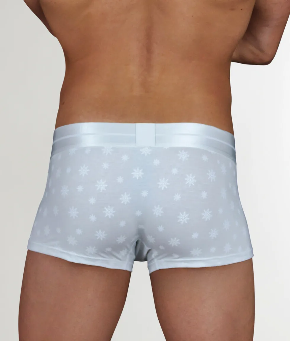 Step into a winter wonderland with the Club Seven Limited Edition Snowflake LUXE Trunk, a masterpiece of comfort and sophistication. Sitting mid-rise on your waist, these trunks feature a flattering, fitted cut with a 3-inch inseam for full coverage and easy movement. The fabric is ultra-soft, breathable, and designed with a touch of luxury, making every wear feel indulgent. It’s moisture-wicking to keep you dry and cool, whether lounging or on the go. The contour pouch offers gentle lift and support, combining practicality with effortless style. A sleek, no-roll waistband completes the look, adorned with elegant yet understated detailing that adds a hint of festivity. The Club Seven Limited Edition Snowflake LUXE Trunk is where seasonal charm meets year-round comfort.