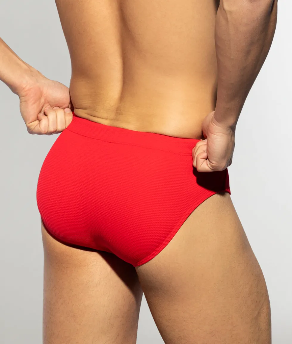 Turn up the heat with the ES Collection Pique Swim Brief, designed for a sleek, body-contouring fit that keeps you feeling confident in and out of the water. This low-rise swim brief sits perfectly on the hips, offering a sculpted silhouette with full back coverage. Crafted from premium pique-textured fabric, it adds a refined touch while ensuring breathability and quick-drying comfort. The contoured pouch enhances support and definition, keeping everything in place with a natural lift. A secure elastic waistband with subtle branding provides a stay-put fit while complementing the streamlined design. Whether lounging poolside or making a splash, the ES Collection Pique Swim Brief is a must-have for effortless style.