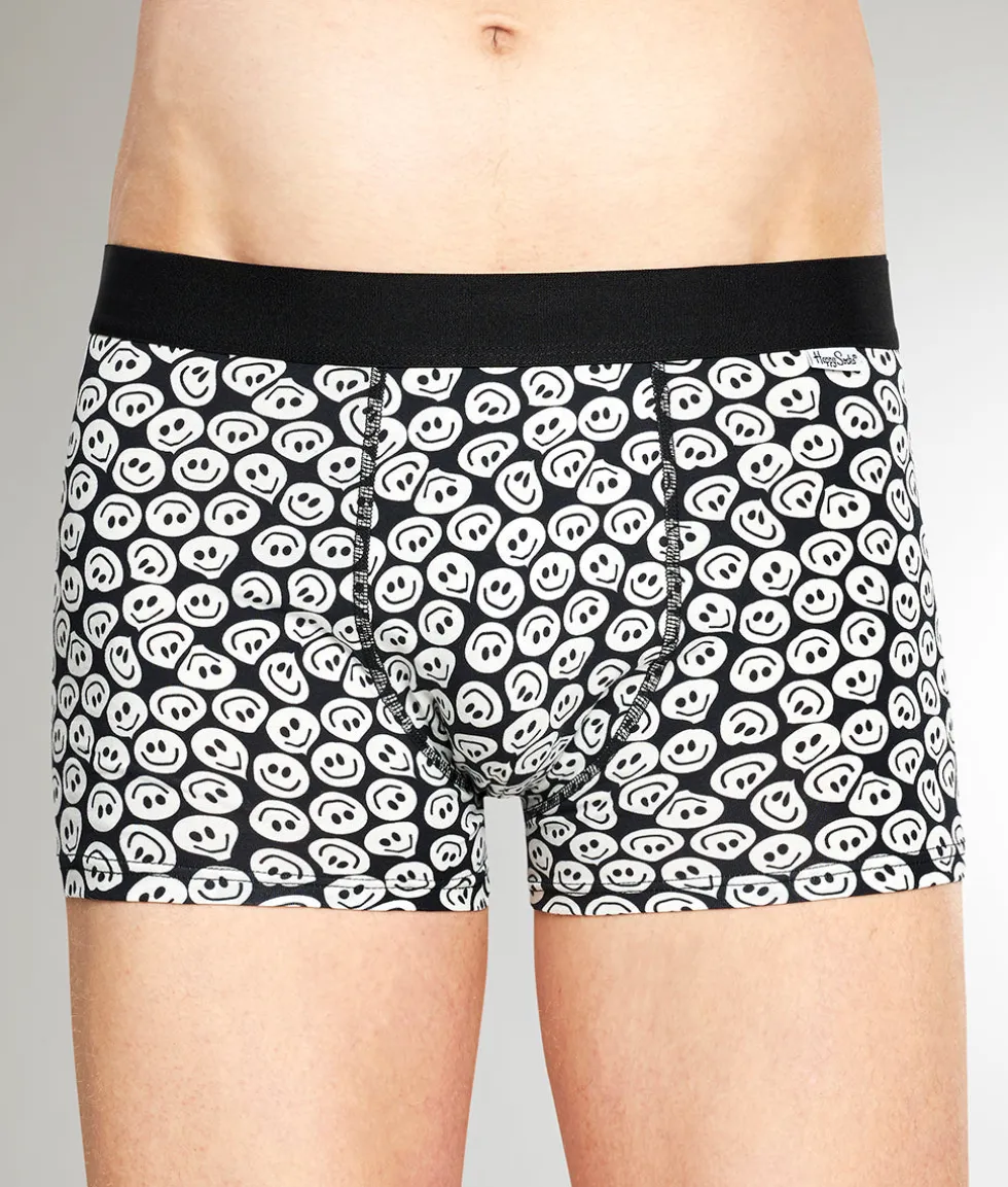 Add a playful twist to your essentials with the Happy Socks Twisted Smile Trunk, where fun design meets unbeatable comfort. This mid-rise trunk sits perfectly on the waist, providing full coverage in the back and a high-cut leg for maximum movement. Crafted from a soft, breathable fabric, it feels delightful against your skin and features moisture-wicking properties to keep you cool and dry all day long. The contour pouch offers solid support and a gentle lift, complete with a convenient fly for easy access. Finished with a thick, no-roll waistband showcasing a whimsical logo, the Happy Socks Twisted Smile Trunk combines quirky style with practicality, making it an essential addition to your wardrobe.