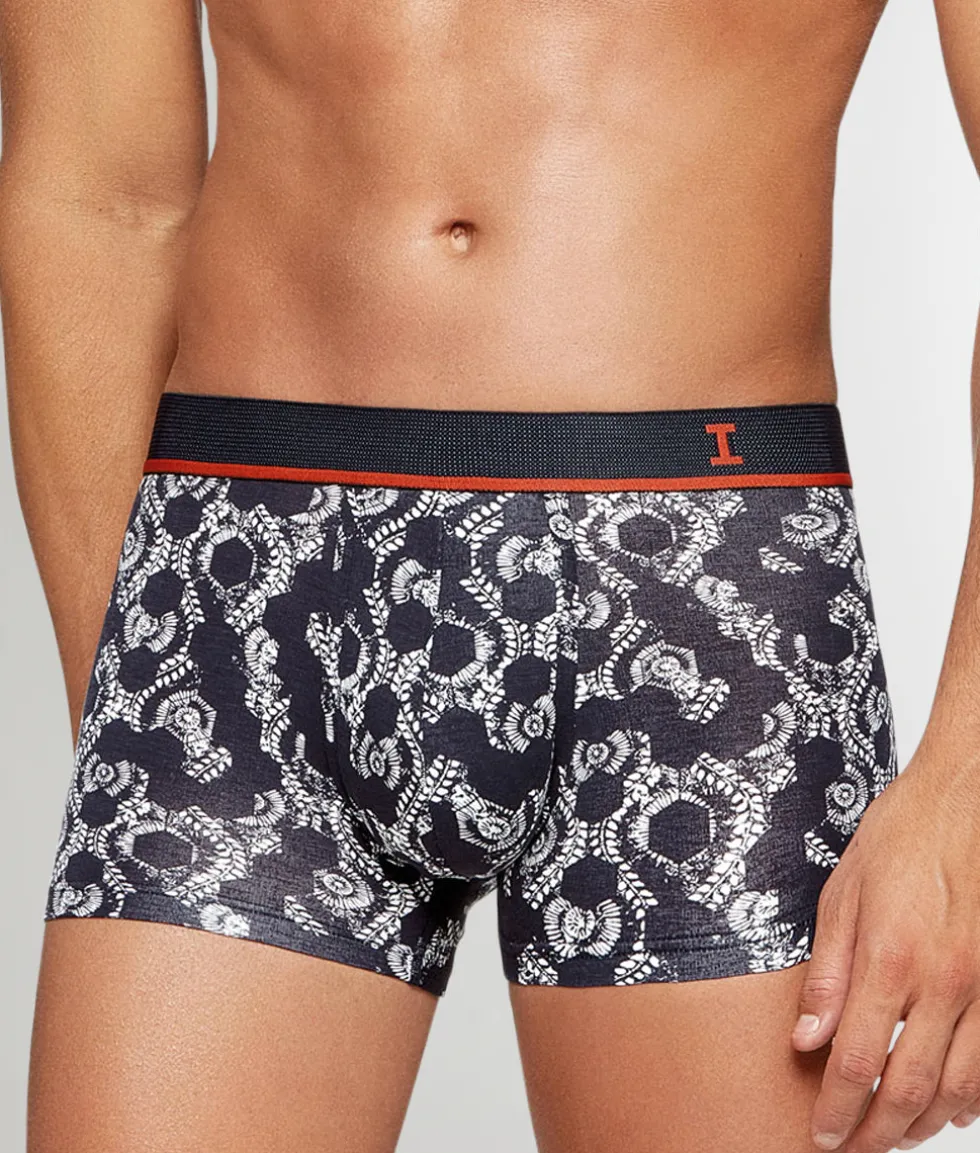 This lusciously soft cotton-modal trunk is easy on the eyes and even easier on your skin. You’ve got a mid-rise silhouette that shows off just enough of your V-lines to reel ‘em in closer, plus a stretchy multi-tone elastic waistband with Impetus’ standard minimal branding. A contoured pouch holds the boys comfortably in place no matter where life takes you, and enhances the look of your manhood in the process. On the body, you’ve got a black-and-what pattern that lives up to its name.
