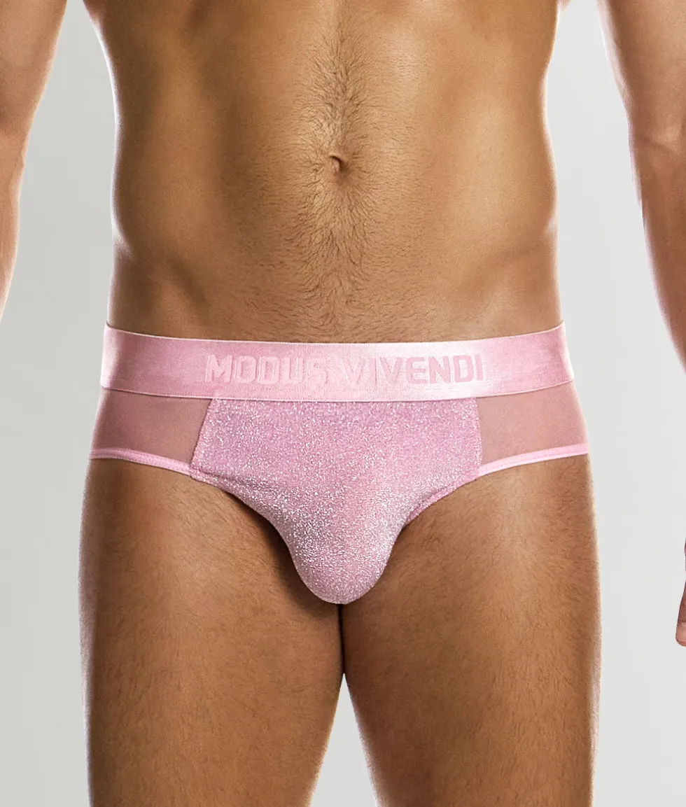 Dive into party-ready playfulness with the Modus Vivendi Delusion Classic Brief—a low-rise brief that struts the line between bold and classic. Sitting just under the waistline, this brief offers moderate side coverage balanced with full rear coverage for a polished silhouette that shines. Crafted from an elasticated knit blending polyester and multicolor metallic yarn, it sparkles under light and feels smooth against the skin. Breathable yet slightly luxurious, it keeps moisture at bay and feels cool during long nights. The pouch is unlined and gently contoured, offering lift and definition without bulk, accentuated by clean piping. Up top, a thick no-roll jacquard waistband with bold branding creates a subtle slimming effect while keeping things confidently cheeky. Complementary details around the side panels—crafted from transparent muslin-like stretch fabric—add that extra pop without overwhelming the design. The Modus Vivendi Delusion Classic Brief gives you sparkle, support, and swagger in one party-ready package.
