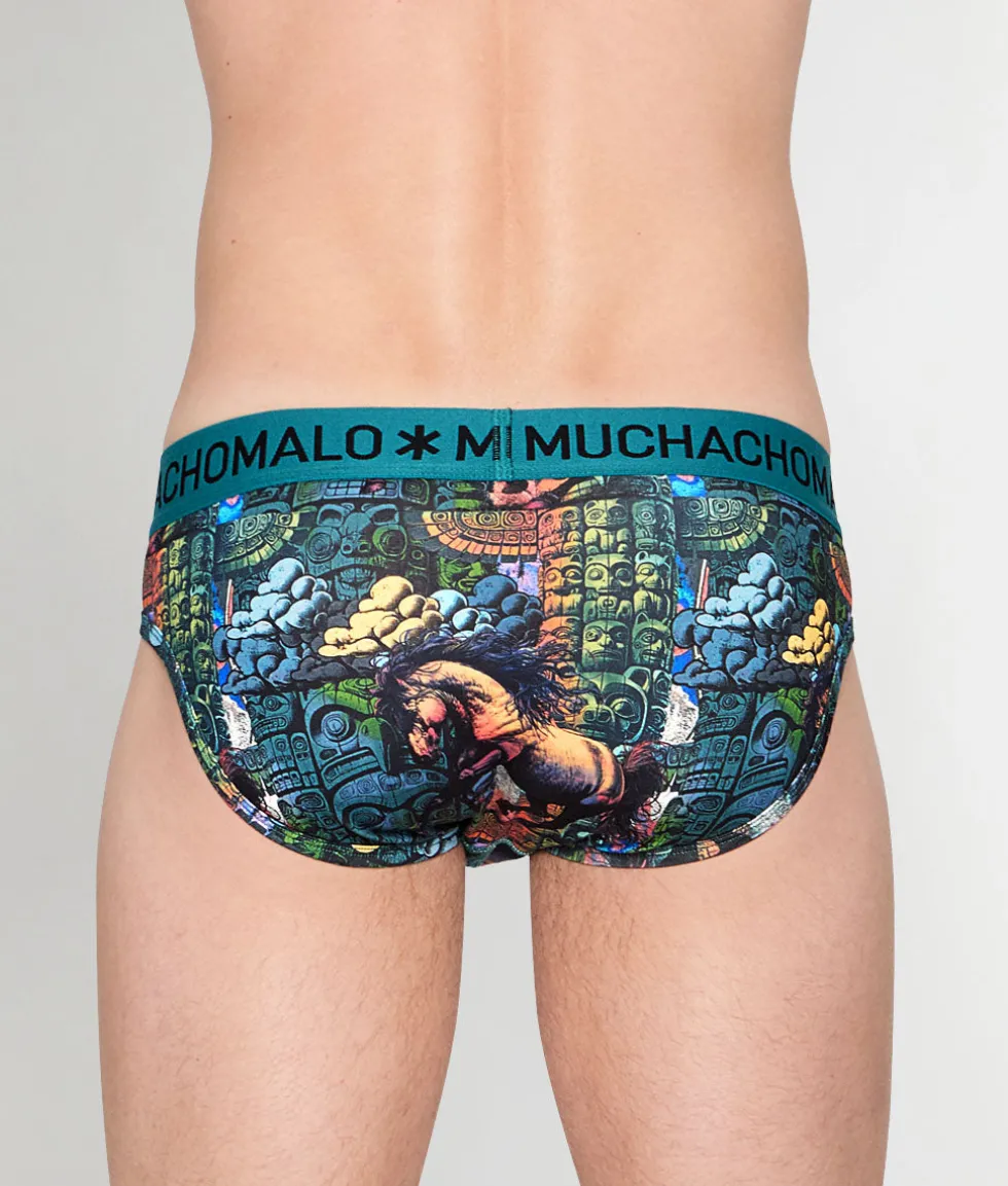 Journey into mystical comfort with the Muchachomalo Totem Horse Brief, where ancient totem-inspired design meets contemporary sophistication in this expertly crafted essential. This mid-rise brief sits perfectly at your natural waistline, featuring high-cut legs that provide full coverage on the sides while delivering sleek support across the back for a flattering, confident silhouette. Crafted from premium 95% cotton and 5% elastane fabric blend, this brief feels luxuriously soft against your skin while delivering exceptional stretch and recovery for all-day comfort. The breathable cotton material naturally wicks moisture away from your body, keeping you fresh and dry throughout your most demanding days, while the elastane provides that perfect stretch for unrestricted movement. The expertly designed contour pouch provides exceptional lift and support, naturally enhancing your shape while ensuring maximum comfort with every movement. The thick, no-roll waistband features bold MUCHACHOMALO lettering that adds a sophisticated touch without being overpowering, creating the visual illusion of a slimmer waist. With eye-catching tribal contrasting details that showcase ancient totem symbols and horse motifs, the Muchachomalo Totem Horse Brief brings together innovative design and premium comfort for the discerning gentleman who loves mystical style.