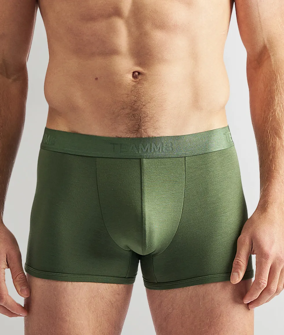 The premium cotton-spandex blend fabric is soft, breathable, and moisture-wicking, offering a cool-to-the-touch feel that keeps you dry and fresh all day long. With a smooth, supportive stretch, the Teamm8 Reign Trunk moves with your body—ideal for both active days and downtime.