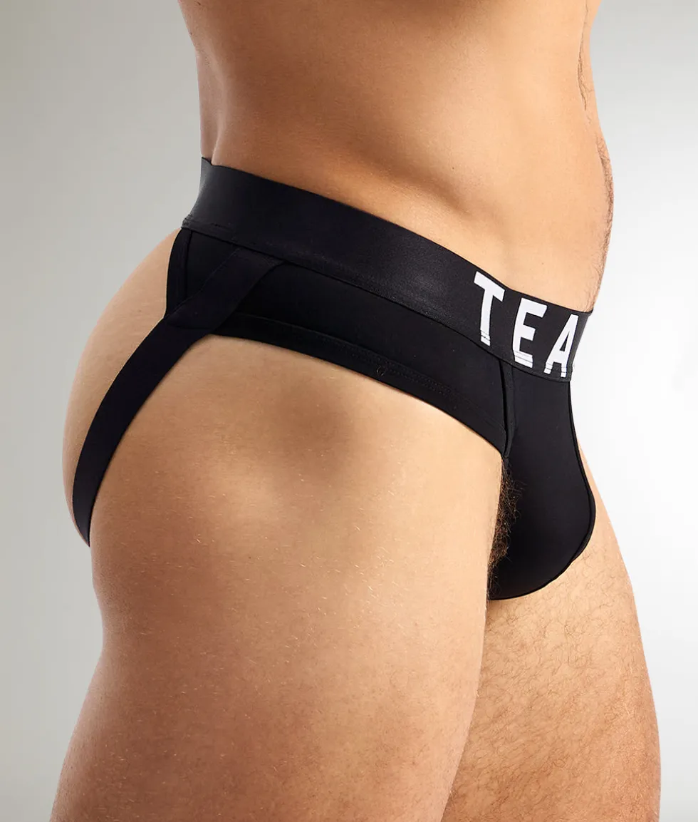 Made from premium moisture-wicking fabric, this jock keeps you cool, dry, and comfortable throughout the day. The contoured pouch provides maximum support and lift, ensuring a secure yet breathable fit. The thick elastic waistband, featuring the iconic Teamm8 logo, adds a touch of athleticism, while the durable leg straps keep everything perfectly in place.