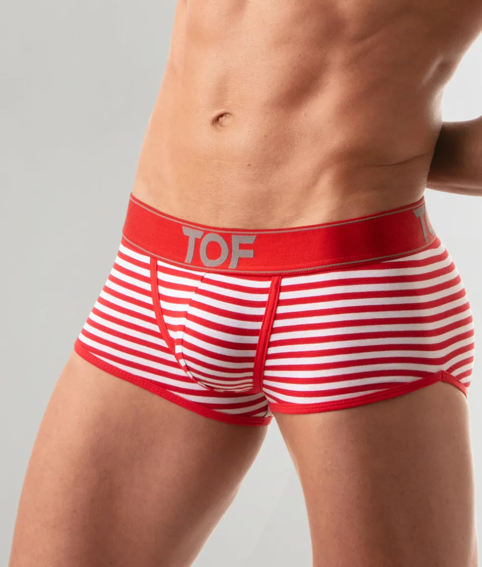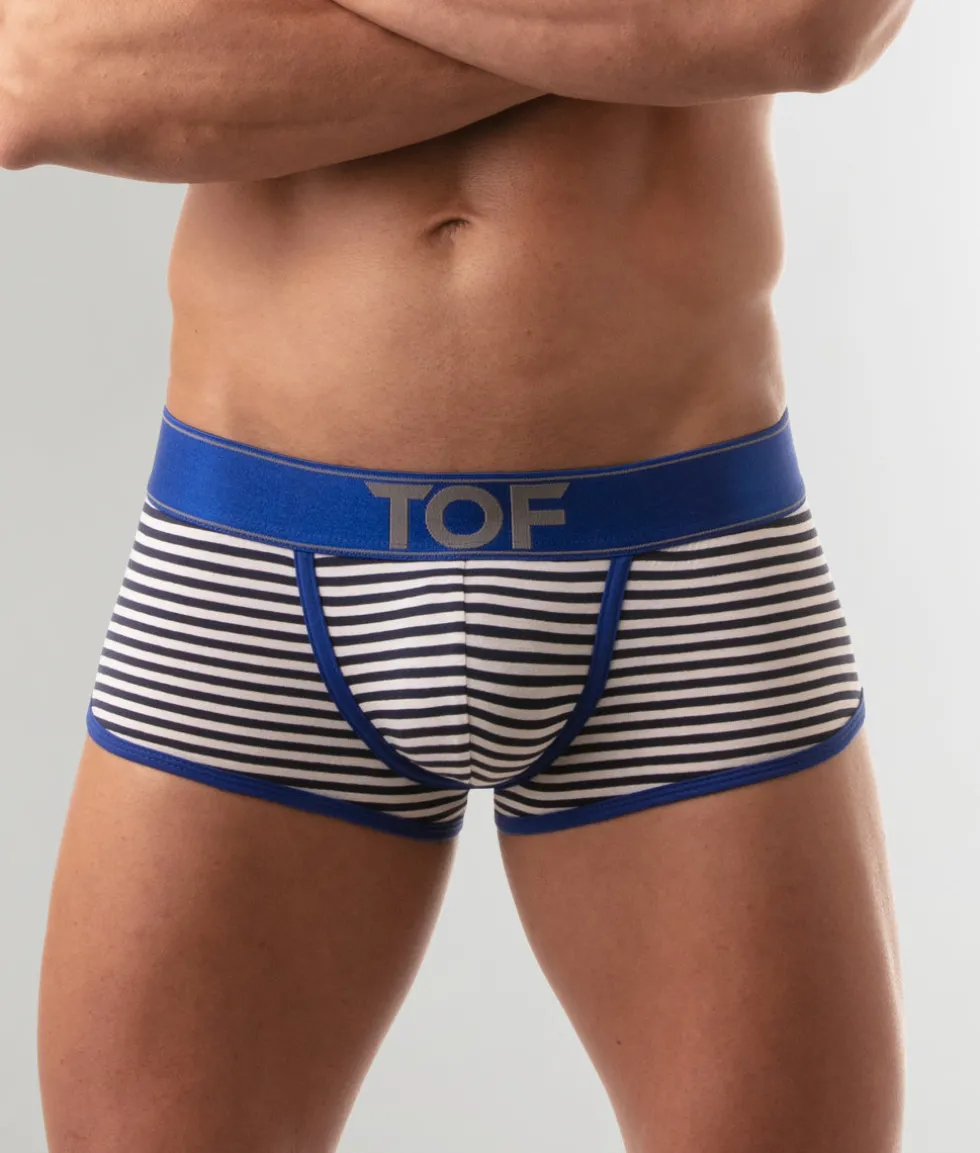 You know cotton: it’s what leisurewear dreams are made of, so it’s a fitting material for the man who likes to feel luxuriously soft all over. A contoured pouch keeps your member in place while your legs enjoy a wide range of motion. Jump, squat, and stretch with complete confidence as this pouch keeps you cool, calm, and collected down there. Up top, a low-rise elastic waistband features “TOF” lettering front and center and above your left cheek out back. Design-wise, it’s also worth mentioning that horizontal stripes do wonders for accentuating the natural contours of your butt, as does the scalloped effect on the side of this trunk.