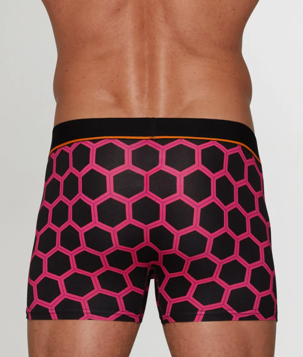 This ultra-soft trunk is easy on the eyes and even easier on your skin. The low-rise silhouette lengthens the look of your torso and leaves little to the imagination — just the way we like it. A contoured no-fly pouch keeps your manhood cool, calm, and collected, so you can tackle that high-intensity workout, no sweat. You’ve got a stretchy, two-tone elastic waistband with the usual branding left of center on the front of the band. Design-wise, you’ve got a hexagonal pattern we love and an unexpected pop of color on the waistband.