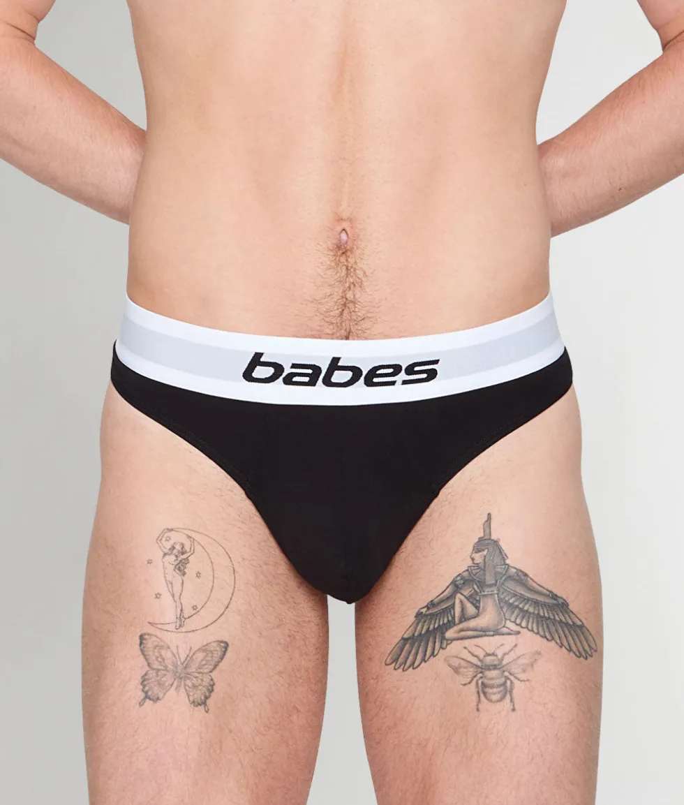 Turn everyday basics into something bold with the Babes Thong, a playful yet functional essential that blends comfort, confidence, and sleek design. With a mid-rise fit that sits comfortably at your natural waistline, this thong delivers minimal back coverage with slim straps that contour your shape while providing just the right amount of lift.