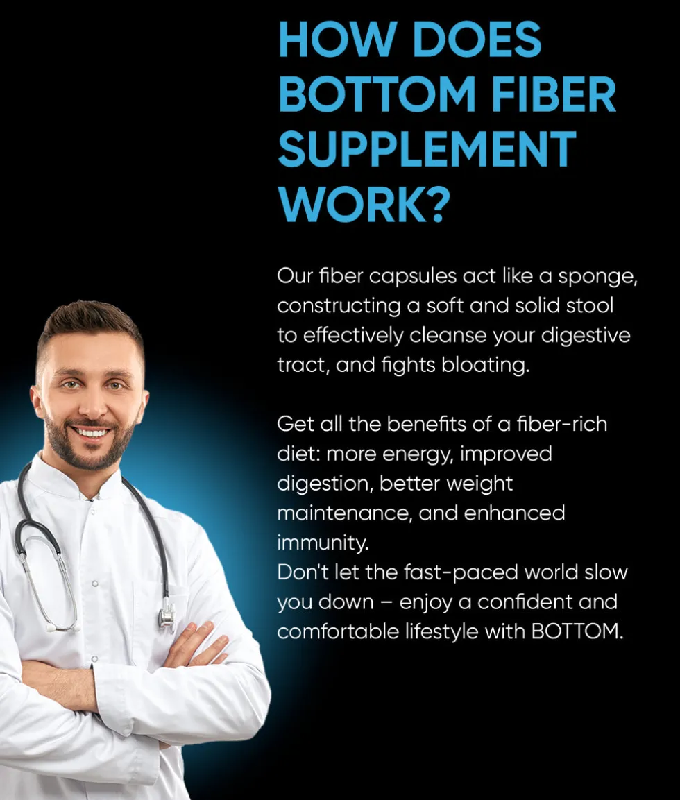 Our fiber capsules not only act as a sponge, constructing a soft and solid stool for an effective digestive tract cleanse and fighting bloating, but they also offer all the benefits of a fiber-rich diet. Experience increased energy, improved digestion, better weight maintenance, and enhanced immunity.