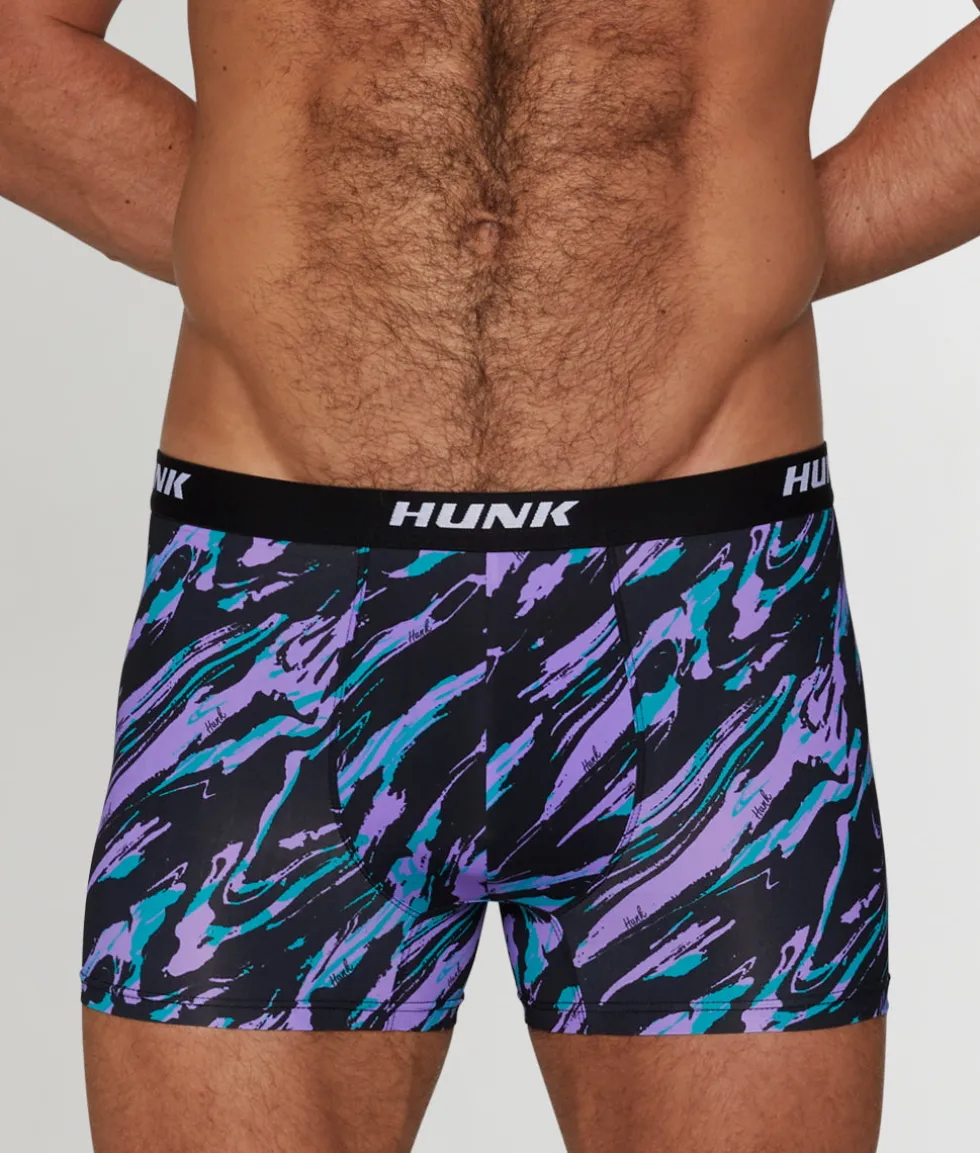 Lightweight, flexible, and surprisingly strong, this ‘90s-look trunk was built to stand the test of time. The low-rise cut you know and love lengthens the look of your torso and leaves little to the imagination — just the way we like it. Stitched down its center, a no-fly, two-ply pouch keeps your manhood cool, calm, and collected, so you can tackle that HIIT workout, no sweat. (Plus, your member gets some natural, flattering-looking lift.) Up top, you’ve got a 30 mm. elastic waistband with “HUNK” lettering all the way around, plus a tiny branded patch out back.