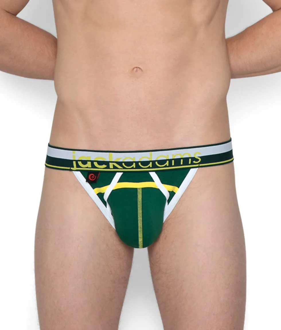 The Jack Adams Cross Train Jockstrap is one that looks to embrace its athletic origins. Featuring a wide back strap, contoured pouch, and a low-rise, the Cross Train Jockstrap offers complete relief, providing a smooth touch and fit. The Cotton/Elastane blend allows for comfort and maneuverability—something essential in a jockstrap. Its vivid use of simple colorways, highlighted by the contrasting tones on both the waistband and piping, brings a sense of the Jockstrap’s relation to sports and sporting culture, presenting an option that’s alluring to anyone.