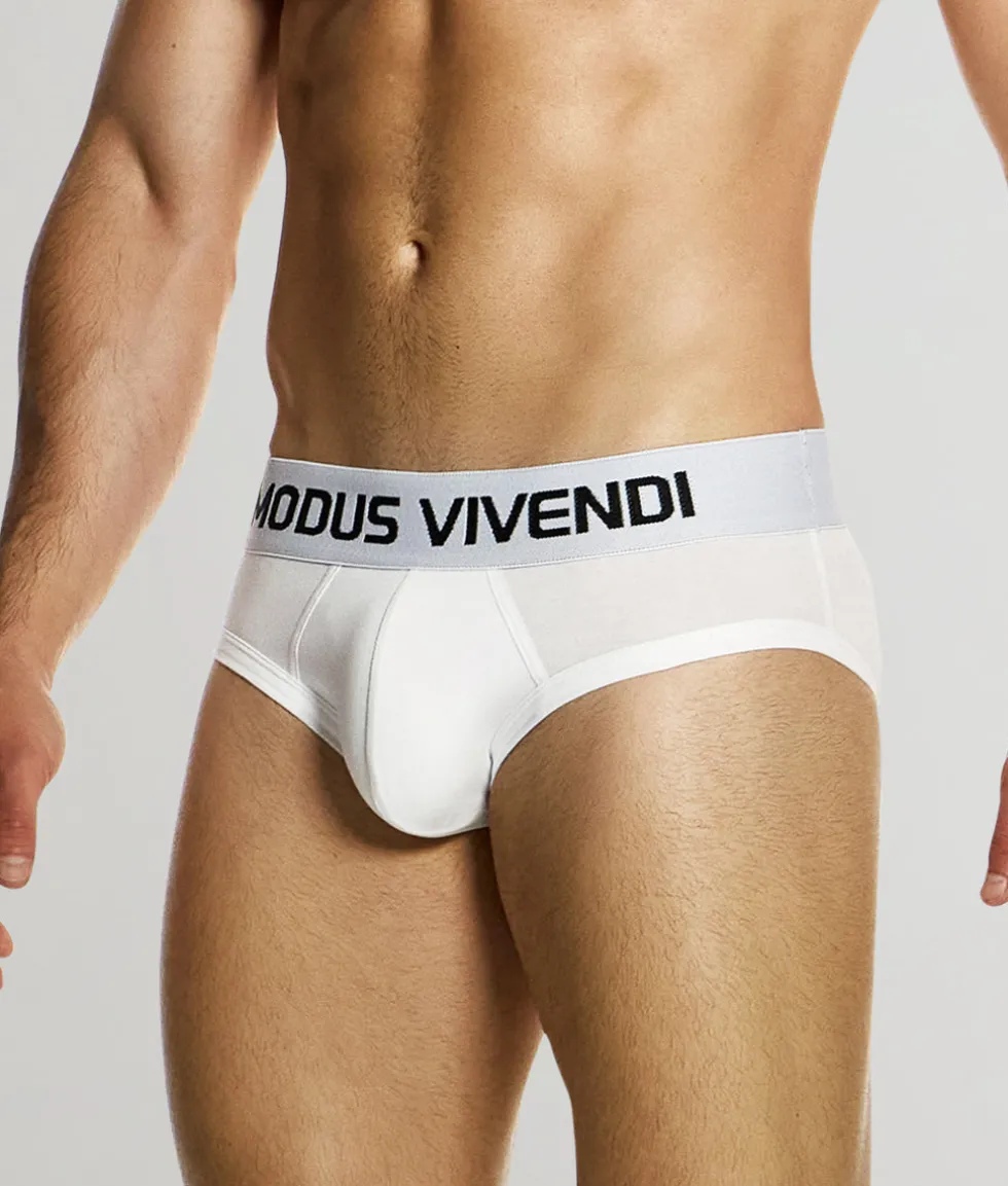 Effortlessly blending simplicity and sophistication, the Modus Vivendi Classic Brief is the perfect staple for your daily essentials. With a mid-rise cut that rests naturally on the waistline, this brief offers a sleek silhouette with moderate side coverage and a fully covered back for a polished, classic look. The soft, breathable fabric feels luxurious against the skin and keeps you cool, thanks to its moisture-wicking properties. A contour pouch delivers exceptional support and a subtle lift, making comfort and style a priority. The waistband is minimalist yet bold, featuring clean lettering and a no-roll design that stays in place all day. The Modus Vivendi Classic Brief is an essential for those who appreciate timeless quality and all-day wearability.