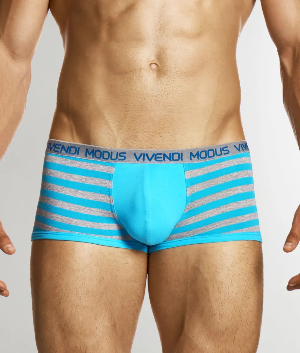 The Modus Vivendi Eighties Trunk brings retro realness with a modern fit that’s equal parts comfy and cool. Designed with a flattering mid-rise waist, these trunks sit right below the natural waistline and feature a square-cut silhouette that offers full back coverage and a snug, supportive fit through the thighs. With an approximate inseam of 2.5 inches, this cut provides enough coverage for everyday wear while still showing a little leg. Made from a stretch-cotton blend, this fabric is soft, breathable, and cool to the touch perfect for daily wear or dancefloor strutting. The contour pouch is subtly shaped for a natural lift and support without any extras like a fly or cock-ring. The waistband is slim and elasticated, designed to resist rolling, with a subtle logo print that adds a sporty, vintage vibe. Color-blocked accents add a bold punch, and the Modus Vivendi Eighties Trunk delivers throwback energy with a fresh, body-conscious twist.