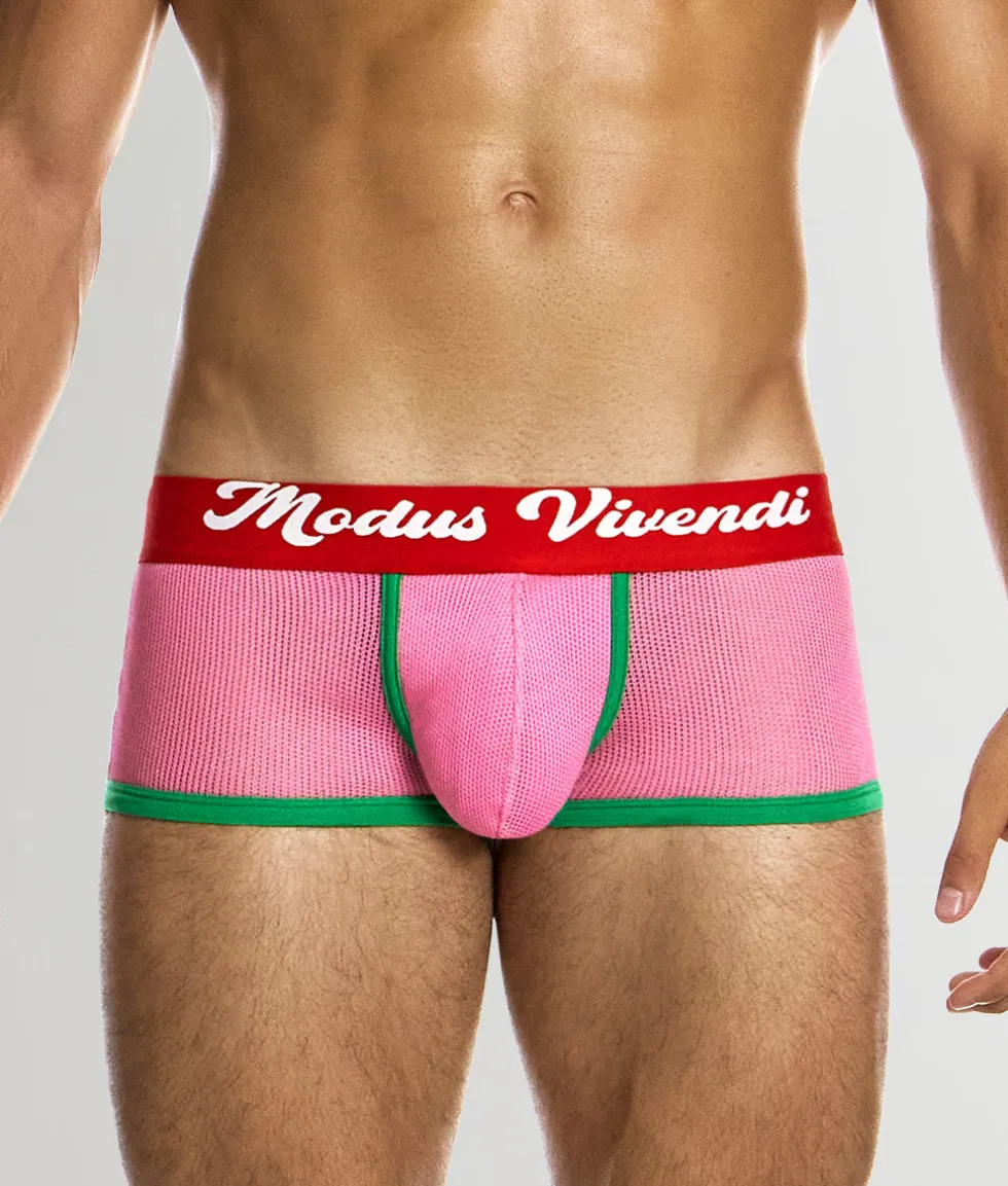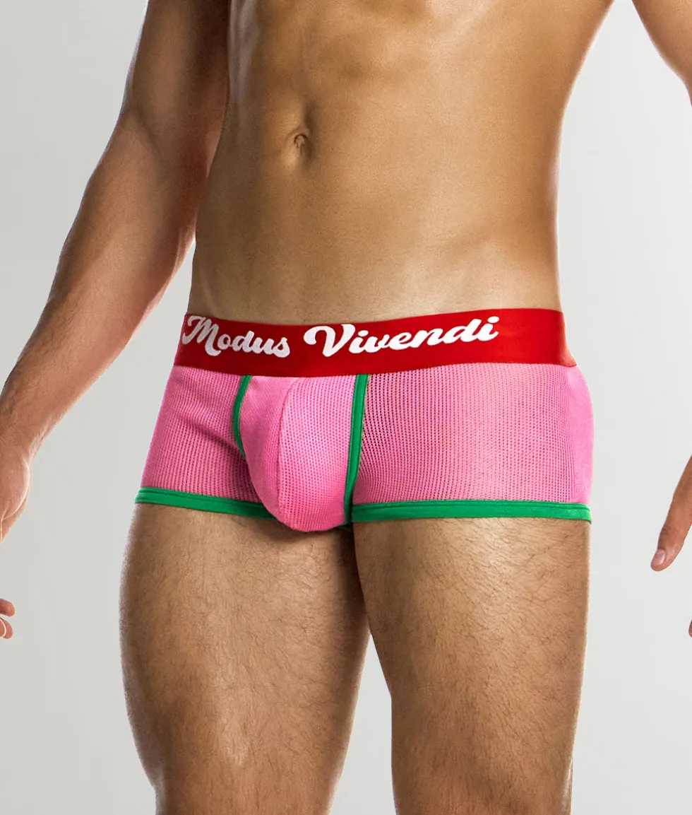 Step back in time with the Modus Vivendi Retro Trunk, a low-rise celebration of nostalgia that sits just below the hip, offering a cheerful high-cut leg and full rear coverage that balances vintage flair with modern comfort. Crafted from a semi-transparent micro-fishnet fabric made of 100% recycled cotton, this trunk feels cool and lightweight on the skin, with excellent breathability and natural moisture-wicking properties.