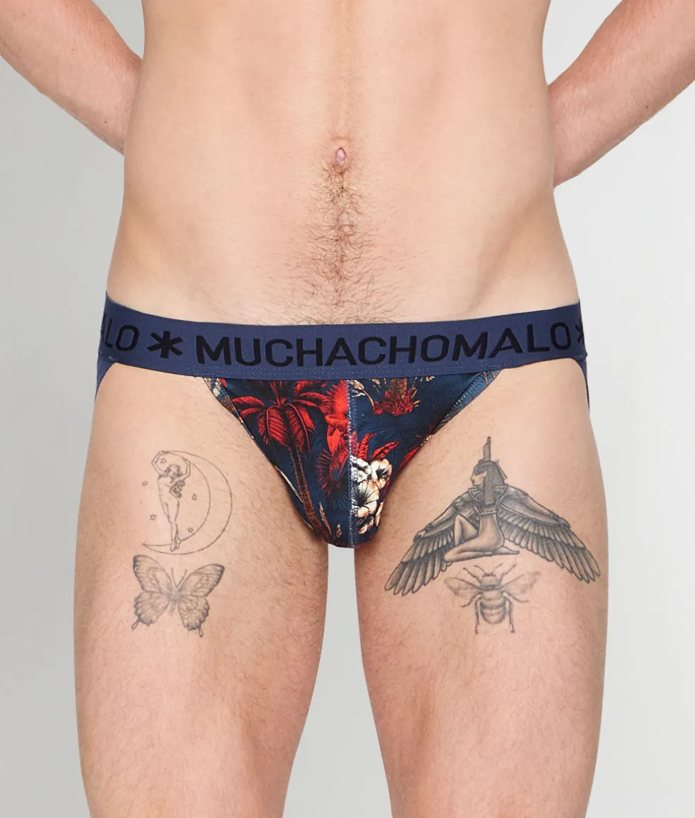 Unleash your tropical confidence with the Muchachomalo Palm Birds Jockstrap, where exotic avian-inspired design meets contemporary comfort in this expertly crafted essential. This mid-rise jockstrap sits perfectly at your natural waistline, featuring high-cut legs that offer minimal coverage while maximizing style and freedom of movement. Meticulously crafted from premium 95% cotton and 5% elastane fabric blend, this jockstrap feels luxuriously soft against your skin while delivering exceptional stretch and recovery for all-day comfort. The breathable cotton material naturally wicks moisture away from your body, keeping you fresh and dry throughout your most active days, while the elastane provides that perfect stretch for unrestricted movement. The expertly designed contour pouch provides exceptional support and lift, with an innovative design that naturally enhances your shape while ensuring maximum comfort with every movement. The thick, no-roll waistband features bold MUCHACHOMALO lettering that adds an extra touch of contemporary flair to your underwear collection. The back straps are crafted with medium thickness for optimal comfort and secure fit without digging in, perfectly complementing the striking tropical bird design elements. Elevate your underwear drawer with the exotic sophistication of the Muchachomalo Palm Birds Jockstrap.