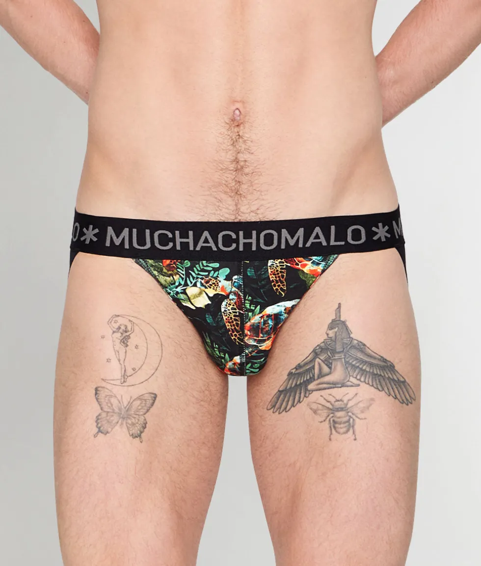 Unleash your oceanic confidence with the Muchachomalo Turtle Jockstrap, where tropical turtle-inspired design meets contemporary comfort in this expertly crafted essential. This mid-rise jockstrap sits perfectly at your natural waistline, featuring high-cut legs that offer minimal coverage while maximizing style and freedom of movement. Meticulously crafted from premium 95% cotton and 5% elastane fabric blend, this jockstrap feels luxuriously soft against your skin while delivering exceptional stretch and recovery for all-day comfort. The breathable cotton material naturally wicks moisture away from your body, keeping you fresh and dry throughout your most active days, while the elastane provides that perfect stretch for unrestricted movement. The expertly designed contour pouch provides exceptional support and lift, with an innovative design that naturally enhances your shape while ensuring maximum comfort with every movement. The thick, no-roll waistband features bold MUCHACHOMALO lettering that adds an extra touch of contemporary flair to your underwear collection. The back straps are crafted with medium thickness for optimal comfort and secure fit without digging in, perfectly complementing the striking marine turtle design elements. Elevate your underwear drawer with the tropical sophistication of the Muchachomalo Turtle Jockstrap.