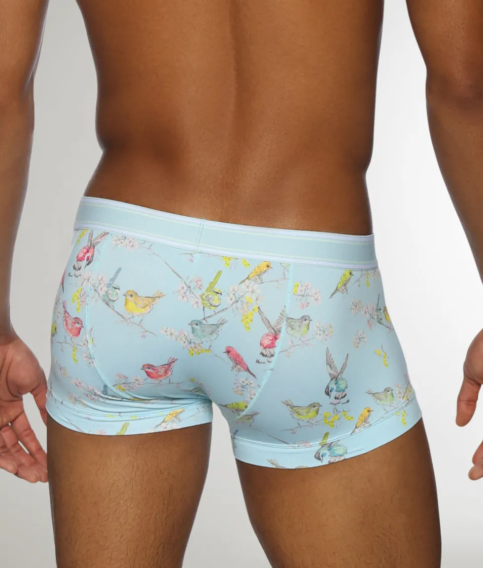 Take a flight of fancy in the Parke & Ronen Bird Song Blue Low-Rise Trunk – where the boldness of nature meets a tailored fit that’s as sleek as it is stylish. Designed with a flattering low-rise cut, this trunk sits comfortably below the waist, offering a contemporary silhouette that enhances your natural shape. With its dynamic print, the Bird Song Trunk brings a burst of personality to your essentials, while ensuring the support you need for any adventure.