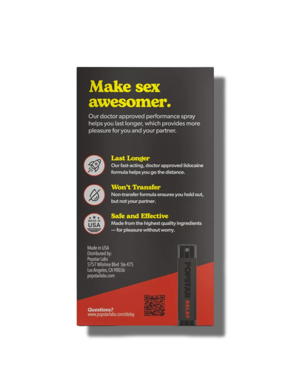 Take charge of your pleasure with Popstar Delay Spray, a fast-acting, doctor-recommended solution designed to help you last longer, stay in control, and enhance pleasure for you and your partner. This easy-to-use spray relaxes nerve cells and postpones climax, keeping performance anxiety and premature ejaculation at bay—so you can go the distance with confidence.
