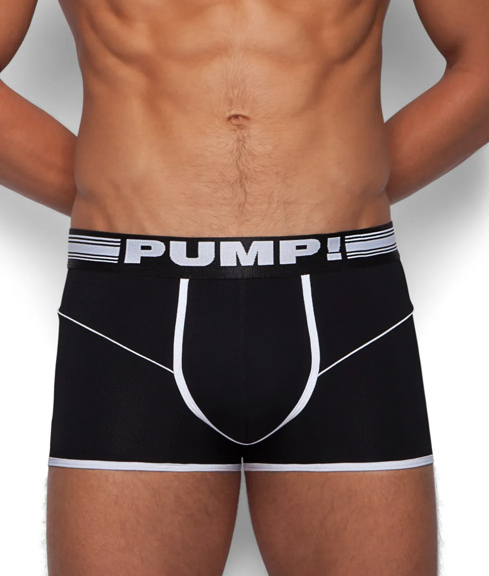 The PUMP! Black Free-Fit Trunk combines the athletic and sensual nature of PUMP! within a form that’s sleek and mysterious. Comprised of a Nylon/Elastane microfiber blend with mesh detailing, the Free-Fit Boxer is optimized to keep you cool and dry while possessing a luxurious hand-feel that’s durable and retentive. The low-rise, 7” leg and contoured pouch complement each other, providing an enhancing look, without compromising on support or comfort. The mesmerizing choice of monochromatic tones creates a visually-pronounced, yet subtle, take that’s both alluring and universally popular.