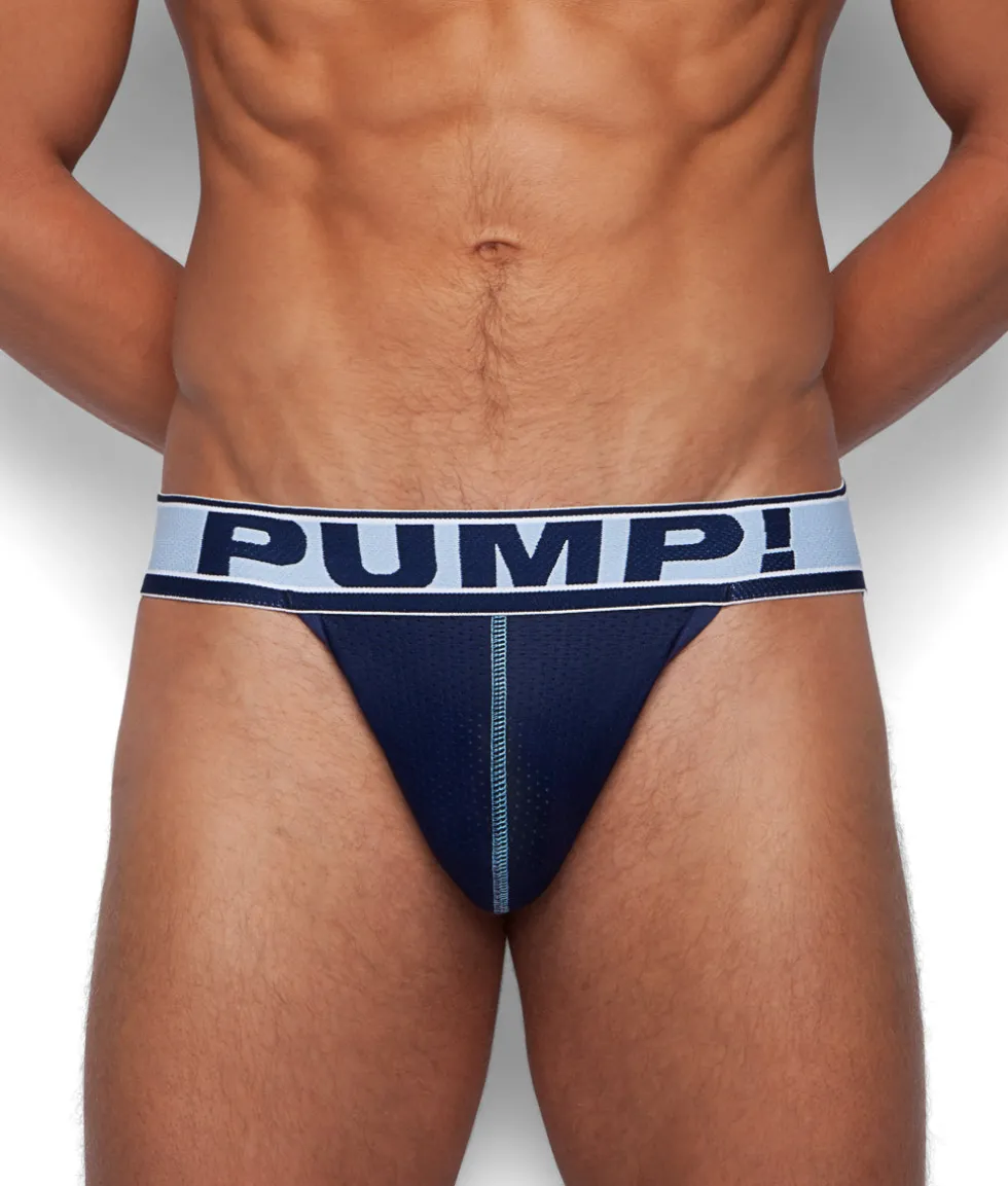 The PUMP! Blue Steel Jockstrap is an advantageous twist to the jockstrap’s image—one that’s cool and sleek while remaining to be practical and performative. Comprised of a Nylon/Elastane blend, the Blue Steel Jockstrap has a silky, smooth hand-texture. The perforated mesh found on the pouch, alongside a thick waistband and thin straps, allow for a comfortable and ventilated wear with the right amount of flirtatiousness. The tonally-blue color blocking combines to create a poised, nuanced look—one that’s both masculine and sensual in more ways than one.