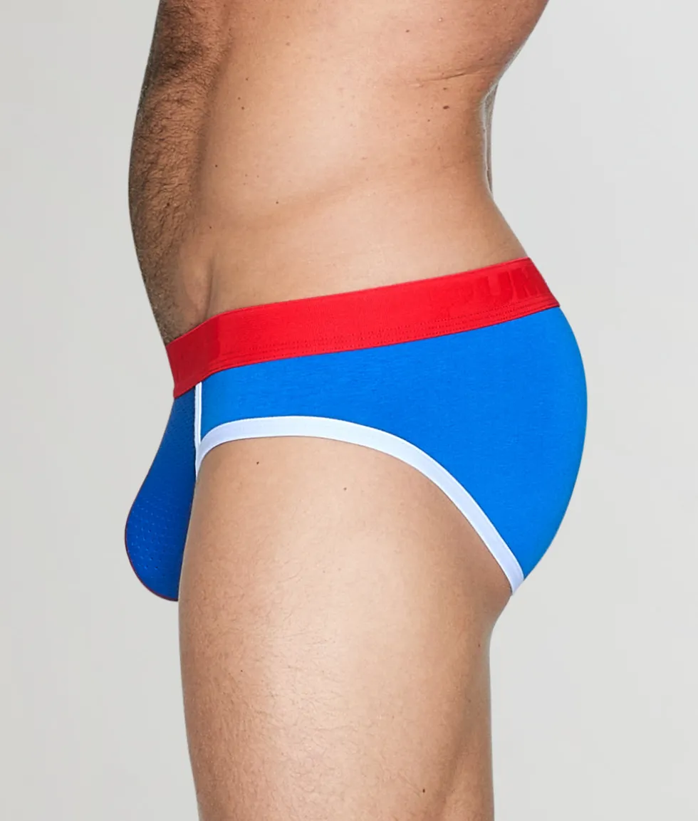 Cool to the touch and moisture-wicking, it’s the kind of underwear you forget you’re wearing, until someone reminds you how great it looks. The PUMP! Cadmium Brief features a supportive contour pouch that enhances your shape and provides lift without compression. A thick, no-roll waistband frames your torso with a sporty pop and features bold lettering that doesn’t shy away from attention. Contrasting details throughout amplify the visual punch, adding a sleek, athletic edge to your everyday essentials.