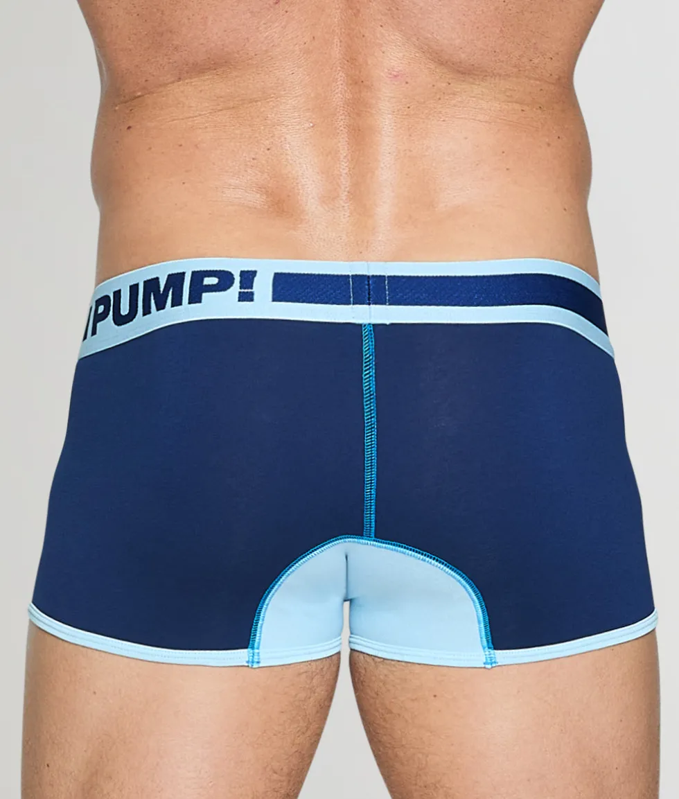The PUMP! Mercury Trunk delivers a sporty, mid-rise fit with a 45mm inseam, offering just the right balance of thigh coverage and movement. Made from ultra-breathable micro-mesh, the fabric feels light, cool to the touch, and wicks away moisture like a pro—perfect for gym sessions or all-day wear. The contoured pouch provides a natural lift with bold piping for extra support and style. A thick, no-roll waistband with eye-catching PUMP! branding adds a confident touch, while contrasting panel details amp up the visual impact. The PUMP! Mercury Trunk is built to flex, breathe, and perform—because basics should never be boring.