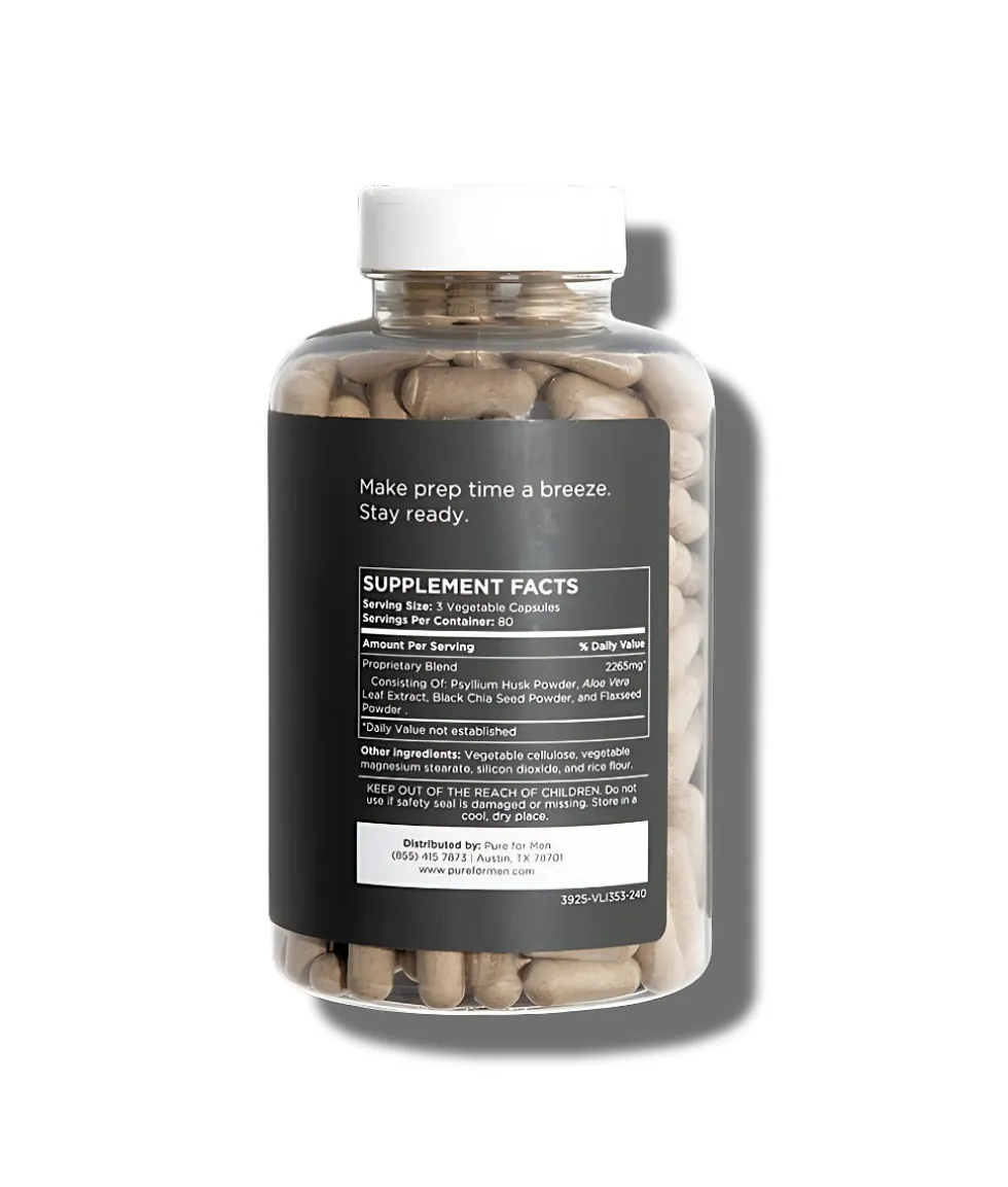Our Pure for Men Stay Ready Fiber Capsules is unlike the rest – can help support healthy digestion, weight management, promotes heart health, helps aid hangovers, & makes prep time easy.