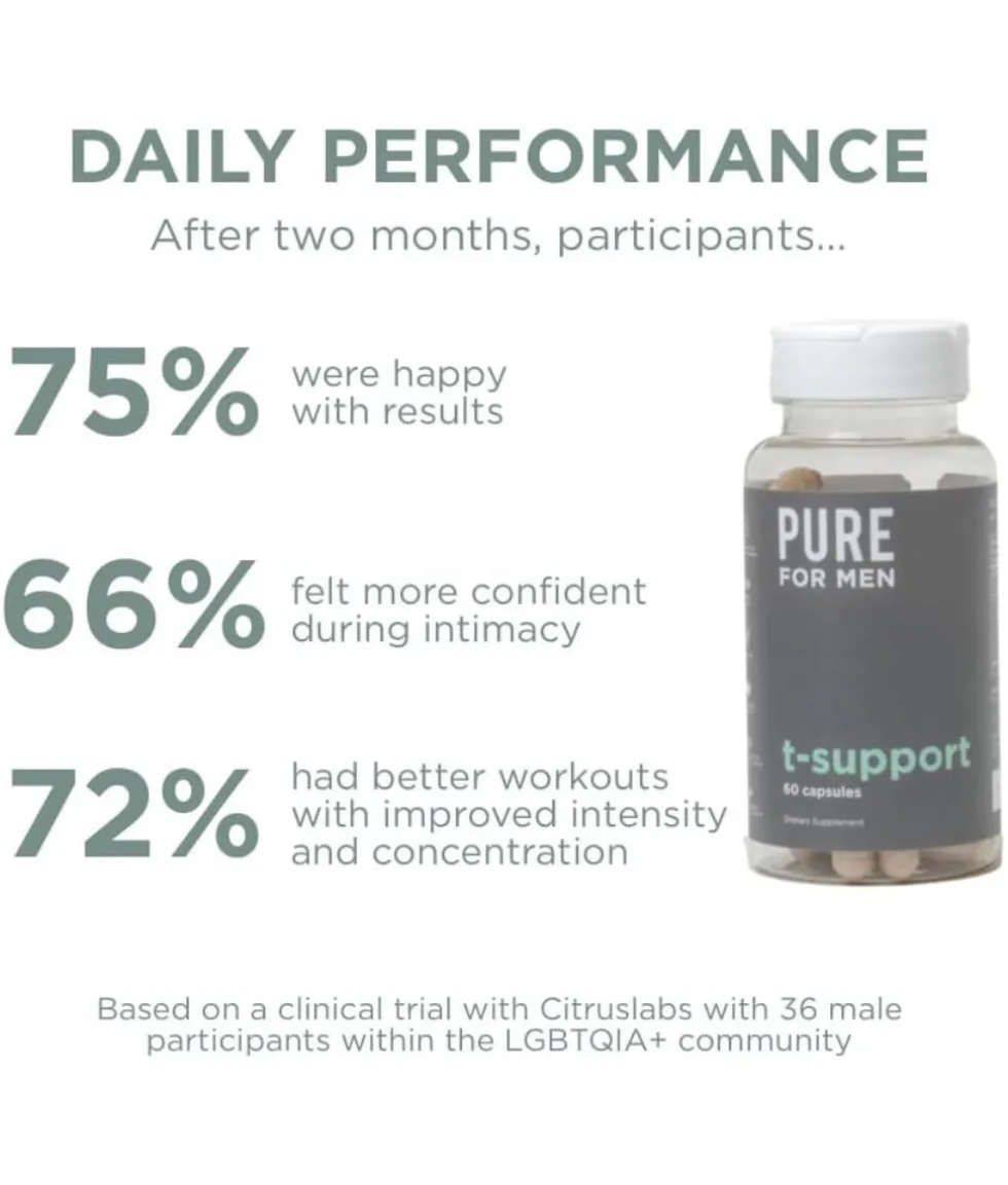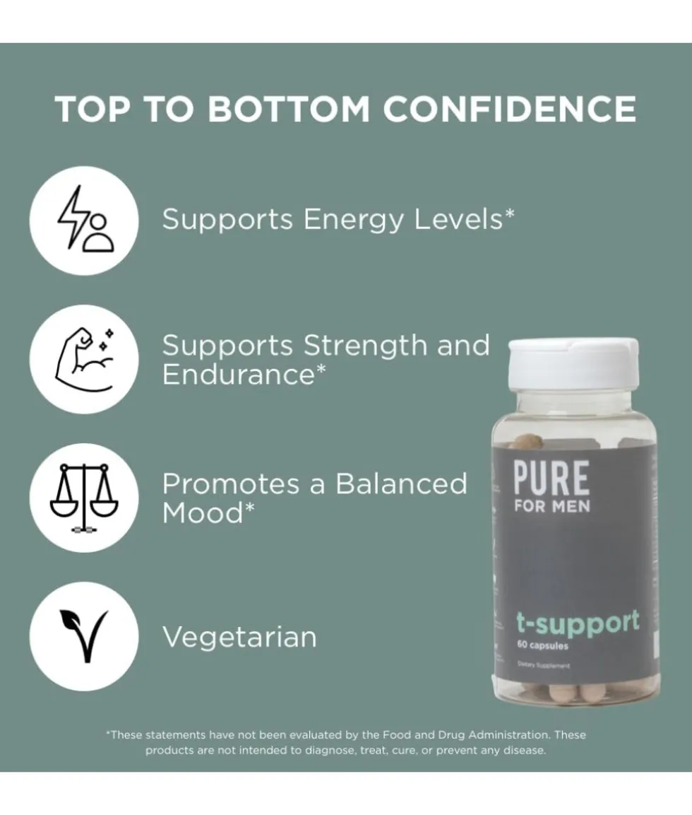 Feel like something is missing when it comes to being your best? Fuel your daily performance with our proprietary blend of key ingredients like Ashwagandha, Zinc, Vitamin D, Maca, and Tongkat Ali. T-Supportâ„¢ provides your body with the building blocks for testosterone production. It is designed to take your body to the next level by maximizing your strength, energy, and endurance for all things physical.