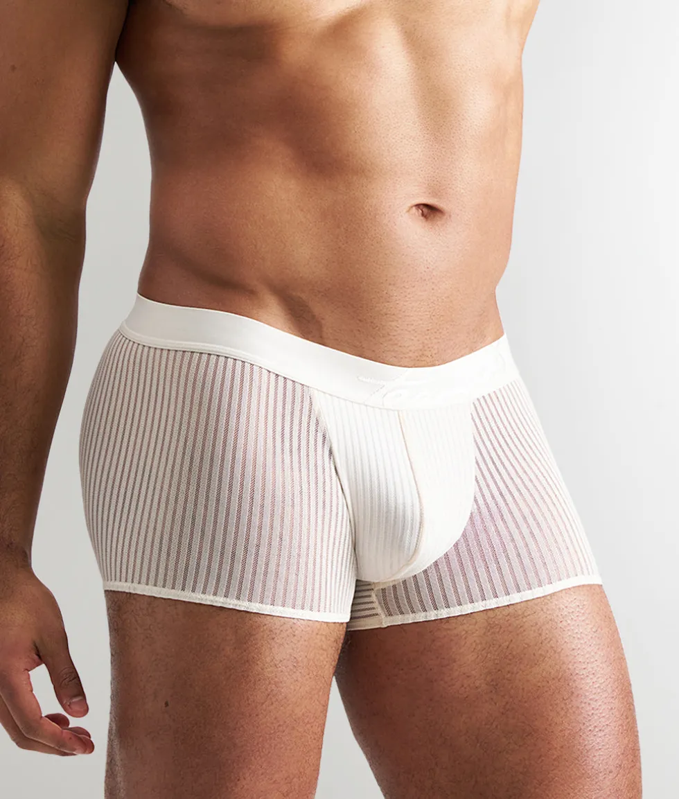 The Casanova Trunk is for the man who knows how to command attention with effortless confidence. This low-rise trunk sits perfectly on the hips, sculpting your physique with a sleek, body-enhancing fit. Designed with a shorter inseam for a modern, revealing look, it offers just the right amount of coverage while keeping things bold and ultra-sexy. The sheer striped fabric teases with glimpses of skin, while the solid fabric-lined pouch provides essential support and comfort.