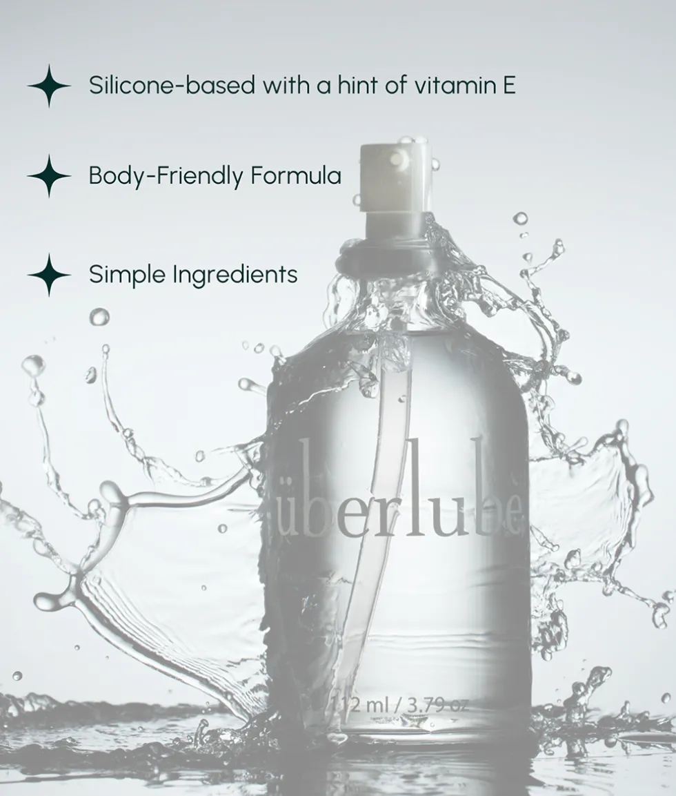 Uberlube is pure silicone with a trace of vitamin E to improve the finish and leave a smooth sensation. Contains Dimethicone, Dimethiconol, Cyclomethicone, Tocopheryl Acetate (Vitamin E)