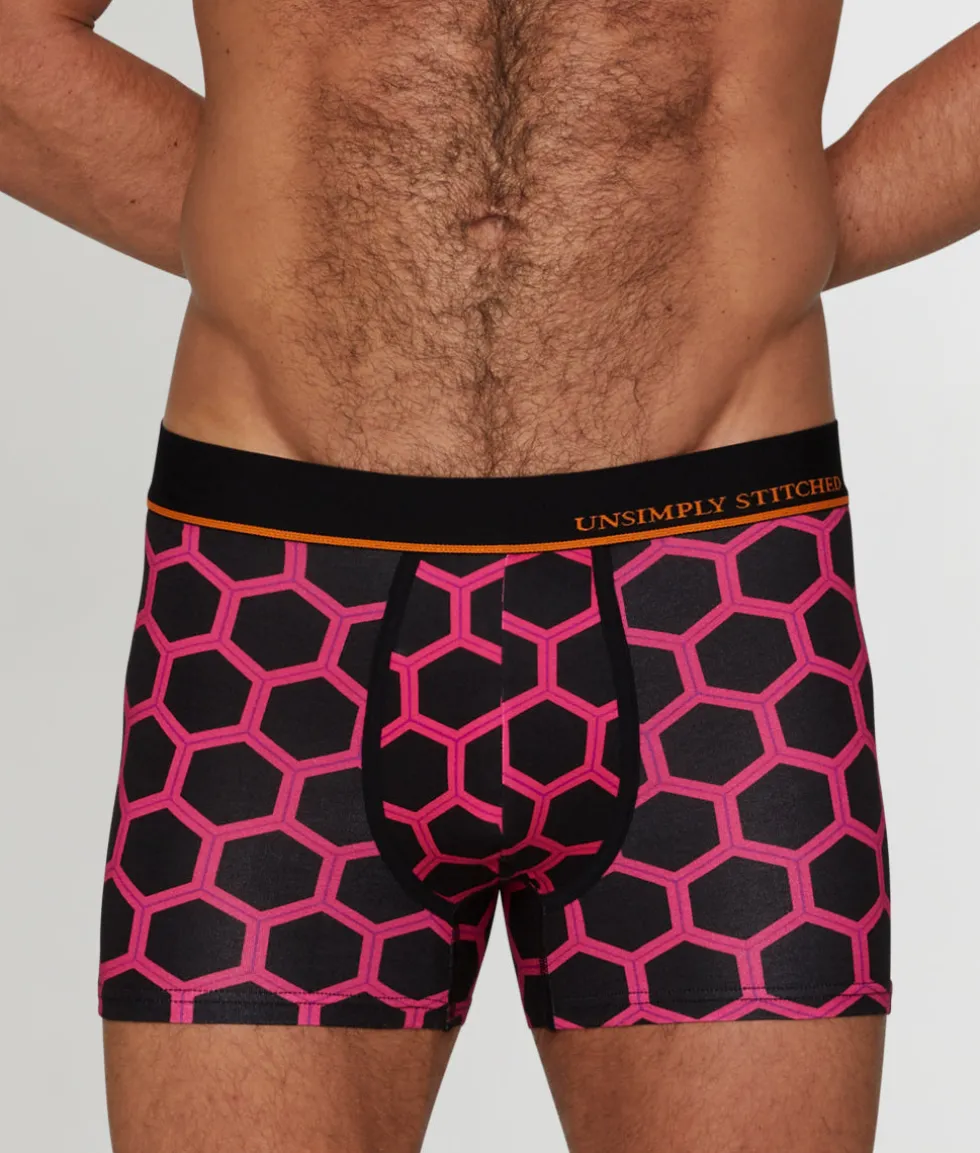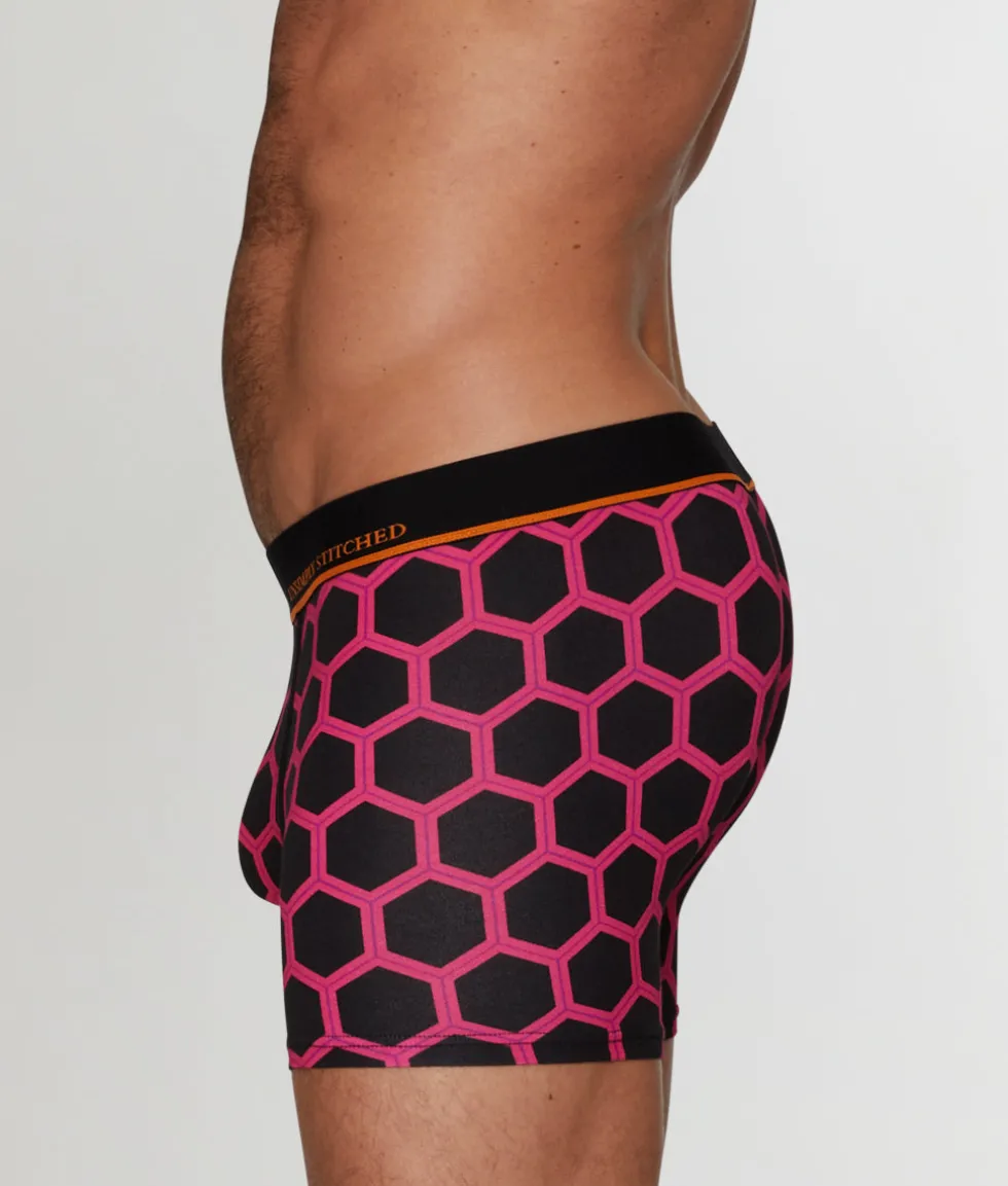 This ultra-soft trunk is easy on the eyes and even easier on your skin. The low-rise silhouette lengthens the look of your torso and leaves little to the imagination — just the way we like it. A contoured no-fly pouch keeps your manhood cool, calm, and collected, so you can tackle that high-intensity workout, no sweat. You’ve got a stretchy, two-tone elastic waistband with the usual branding left of center on the front of the band. Design-wise, you’ve got a hexagonal pattern we love and an unexpected pop of color on the waistband.