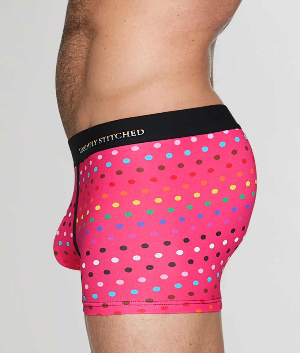 Bring a little playful pride to your everyday essentials with the Unsimply Stitched Pride Polka Dot Trunk. Designed for comfort and confidence, these trunks feature a smooth cotton-spandex blend that moves with you, offering breathability and a soft touch against the skin. The mid-rise fit sits just right – snug but never restrictive – providing the perfect balance of support and ease.
